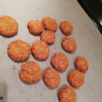 Als je gewone simpele koekjes wil kan je deze nu vormen en op een met bakpapier beklede bakplaat leggen. De koekjes gaan voor 20 tot 25 minuten in de oven.