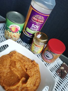 - 1 el Pindakaas (ik gebruik de Mister kitchens Honing chili)