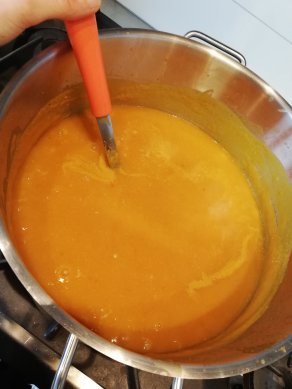 Laat dit doorkoken totdat de zoete-aardappel en pompoen zacht is en dan kan je de soep pureren.
