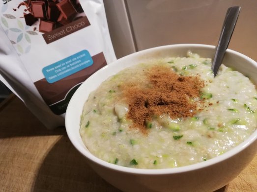 Ja het moet niet gekker worden, maar tegenwoordig is het ook heel normaal om courgette door je havermout te doen. De courgette maal je fijn of rasp je en dit gaat dan door je havermoutpap. Ik heb dit al heel vaak zien langskomen, maar durfde het eerst eigenlijk niet te proberen. Het leek mij zo gek en vies. Tot vorige week, ik moest en zou het proberen. Dus courgette geraspt en er havermoutpap mee gemaakt. Gezoet met de Stevia Chocolade van Greensweet en klaar. En weet? Het was nog eens lekker ook, ik maak het namelijk nu regelmatig een keer klaar. Zo krijg je ook weer gelijk een deel van je groente-inname binnen zonder dat je er iets van proeft, want de courgette zorgt voor meer volume in je havermout, maar je proeft er niks van. Zo heb je een lekker vullend ontbijt.