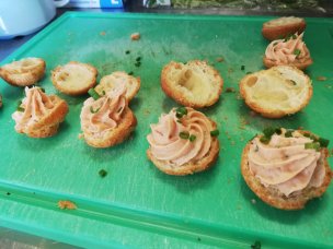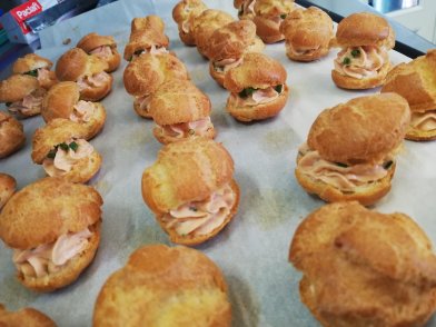 En klaar zijn je heerlijke soesjes met een mousse van zalm.