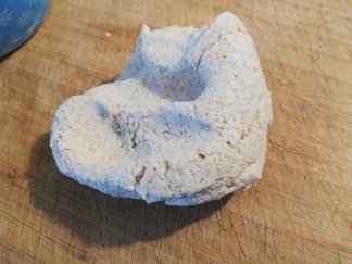 Mix alle ingrediënten in een kom tot een deeg-bol. Is het te plakkerig, voeg er dan nog wat extra meel aan toe. Zorg er wel voor dat het niet te droog wordt, anders heb je hele droge koekjes.