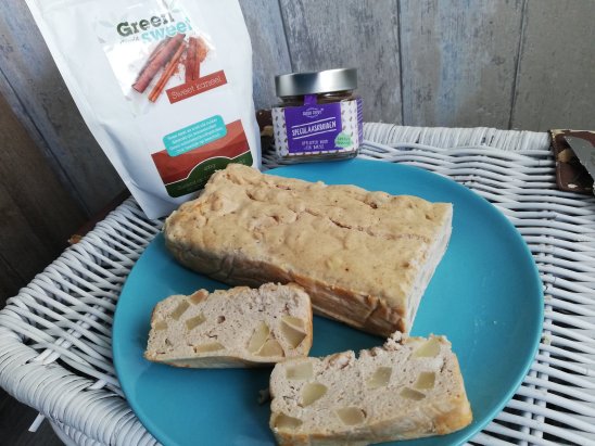En klaar is deze heerlijke smeuïge kwarkcake met peer en speculaaskruiden.