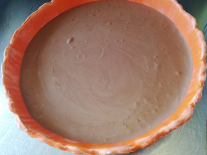 Zodra de chocolade is afgekoeld en het ei-mengsel goed is opgeklopt, ga je het door elkaar spatelen.