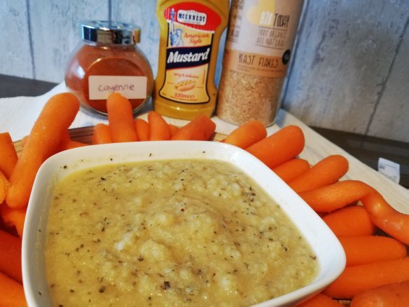 Pureer de bloemkool tot een gladde puree en voeg de rest van de ingrediënten toe. En klaar is je vegan kaas-dip. Lekker makkelijk en snel! Heerlijk als dip bij verschillende groente, zoals wortels bij mij. Ik hou namelijk van wortels met dip.