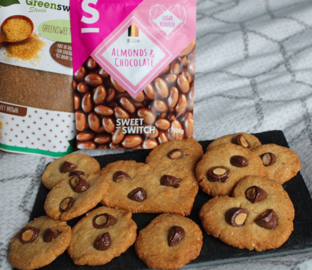 Wat is er nou lekkerder dan koekjes? Zelfgebakken koekjes natuurlijk! Je hebt dan niet alleen lekkere koekjes, maar ook je hele huis ruikt heerlijk naar zelfgebakken koekjes. Win-Win situatie! Ik heb gebruik gemaakt van de sweet brown van Greensweetstevia en de chocolade amandelen van Sweet en Switch waardoor de koekjes ook suikervrij zijn, maar dit is niet noodzakelijk. Je kan deze ook vervangen door gewone bruine basterdsuiker en chocolade amandelen.
