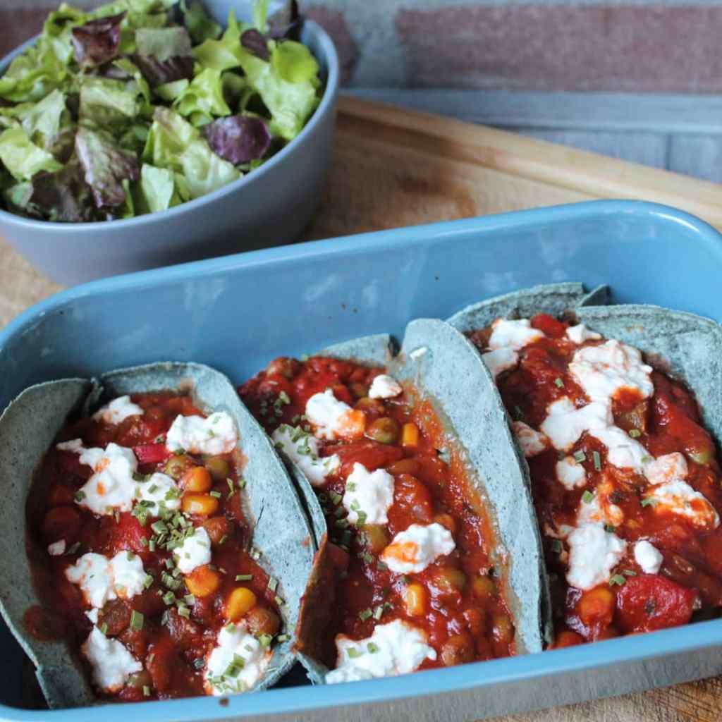 Ik heb er een heerlijk taco’s gerecht van gemaakt met de Blauwe Mais tortilla’s van La Morena, maar je kan ook andere tortilla’s ervoor gebruiken.