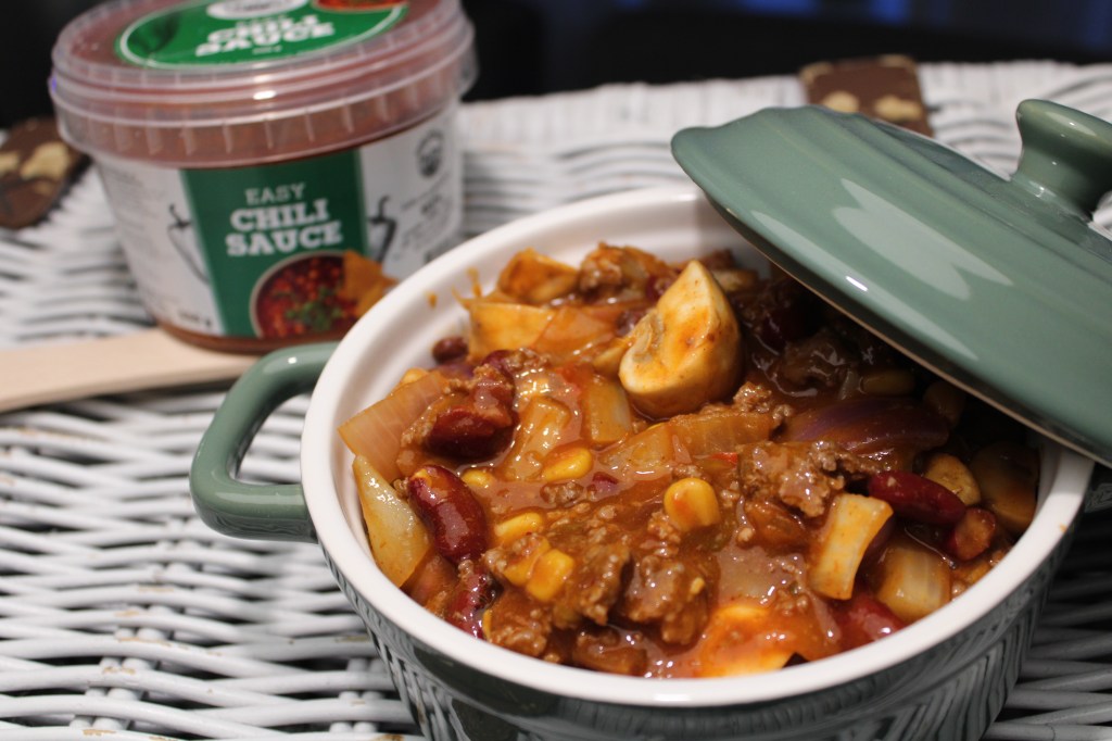 Daarna kannje de rest van de ingrediënten aan de pan toevoegen en breng je het op smaak met zout en peper. Eventjes 15 minuutjes op laag vuur laten pruttelen en klaar is je heerlijke Mexicaanse maaltijd.