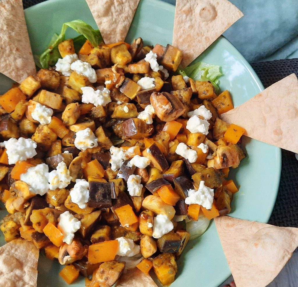 Daarna is het nog een kwestie van garneren met wat sambal (als je van pittig houdt), geitenaas/ feta of hüttekäse en lekker met rijst/ wraps of naan brood.