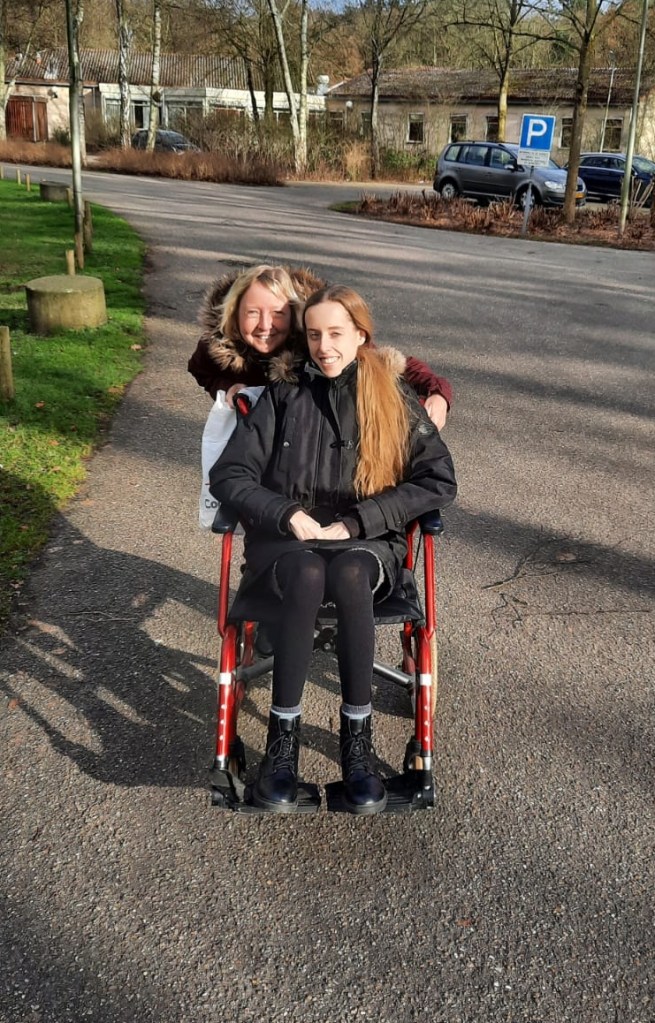 Vanmiddag was het even fijn. Fijn om even mijn moeder hier te hebben, even van de afdeling af en even kunnen praten. Ik mocht ook met de rolstoel mee naar buiten, even wat frisse lucht. Wel eng in de rolstoel, want ik heb het gevoel dat iedereen naar mij kijk.