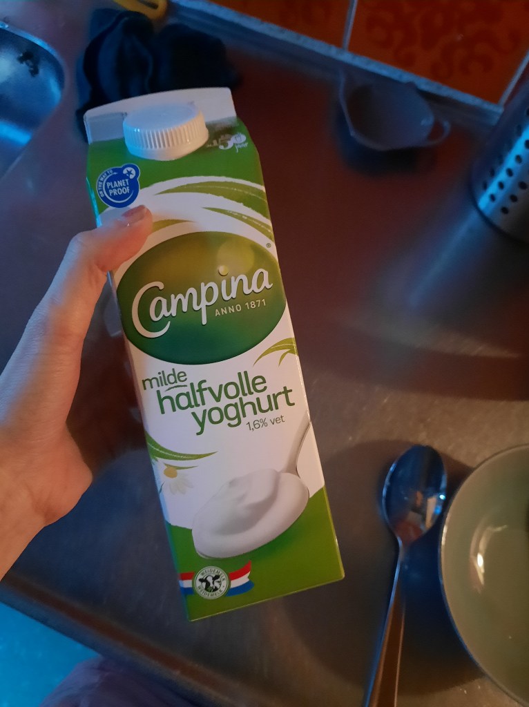 Ontbijten is totaal niet mijn ding, maar ik weet dat het nu even moet. Als ontbijt eet ik nu yoghurt met muesli. Het liefst heb ik magere yoghurt, hiermee ben ik ook opgegroeid en vind ik ook echt het lekkerst. Sinds ik thuis ben uit de kliniek ben ik overgestapt op de halfvolle yoghurt en hier wil ik aan gaan wennen, zodat ik deze lekkerder gaat vinden. (in de kliniek kreeg ik volle yoghurt, maar dit is na mijn smaak erg vies en kon ik niet aan wennen)
