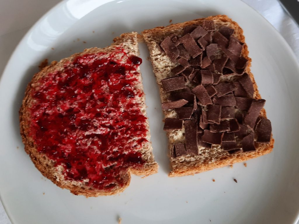 Voordat ik naar de kliniek ging lunchte ik ook niet. Net zoals het ontbijt sloeg ik deze over. Nu ben ik zover dat ik met 3 boterhammen lunch. Dit is al een hele overwinning. Daarnaast heb ik qua beleg ook al meerdere uitdagingen gedaan. Ik eet sowieso 1 boterham met kaas, dit leerde ik in de kliniek weer eten en daar ben ik blij om, want ik hou van kaas. Helaas lukt het mij nog niet om mijn lievelings kaas te nemen. Ook heb ik geleerd om 1 boterham met boter en zoet beleg te nemen. Dit is en blijft lastig. Ik hou namelijk niet zo van zoet, maar omdat ik wel meer wil leren eten, ga ik hier voorlopig nog wel mee door. Op dit moment wissel ik af met jam, vlokken en gestampte muisjes. Mijn derde boterham neem ik meestal met iets van vleeswaren en hierin wil ik ook meer gaan leren variëren, zodat ik meer keus en afwisseling krijg.