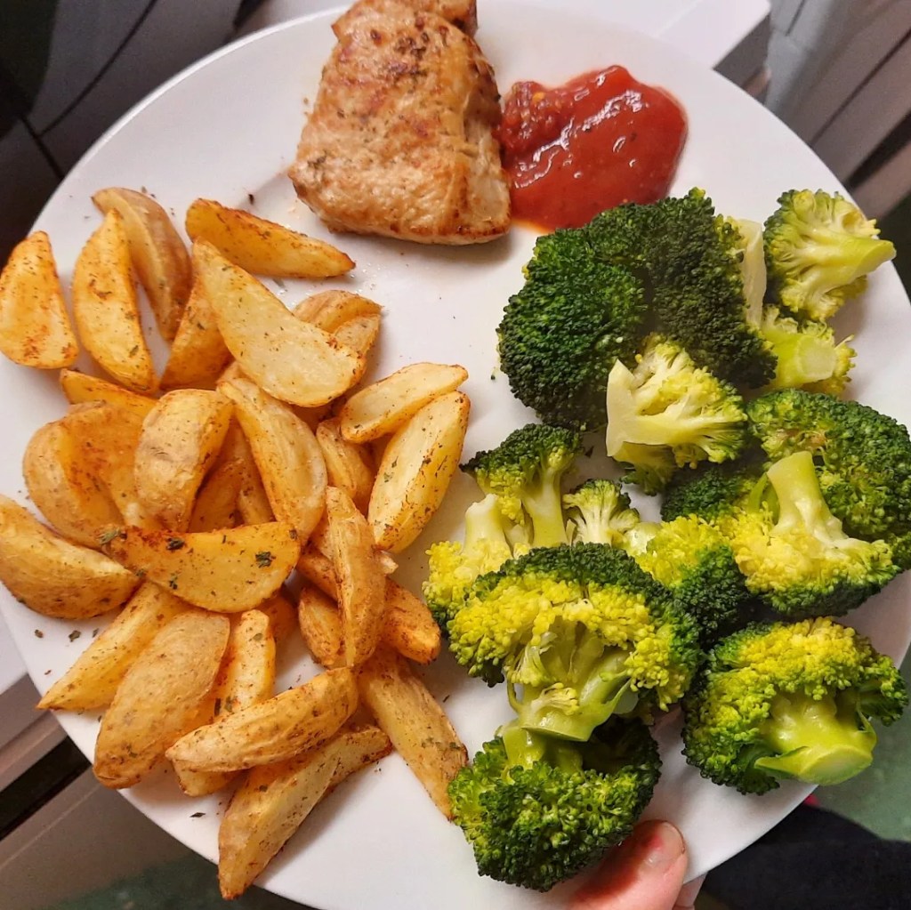 Op dit moment is elke avondmaaltijd een uitdaging. Ik at normaal namelijk geen volledige maatlijden. Koolhydraten zo min mogelijk en gebruikte geen vet. Saus was ook een no-go voor mijn eetstoornis, maar nu probeer ik dat ook vaker te nemen. Nu bak ik in boter of olie en ik eet altijd een volwaardige portie koolhydraten, eiwitten en groente. Soms lukte het zelfs om iets meer te nemen.