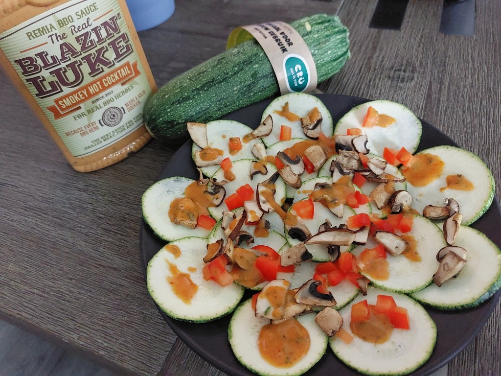 Vorige week kreeg ik de Foodybox Zomer 2022 binnen van Kroonophetwerk. De Foodybox wordt 4x per jaar verstuurd met daarin nieuwe producten. De zomerbox 2022 staat in het teken van barbecue. Nou barbecue ik nooit, maar natuurlijk kan je de producten ook gebruiken zonder te barbecueën. In deze zomerbox zaten ook 2 courgettes van Cru, Verse oogst en nieuwe sauzen van Remia. Met de courgette en de smokey hot cocktailsaus heb ik een heerlijk voorgerecht mee gemaakt.