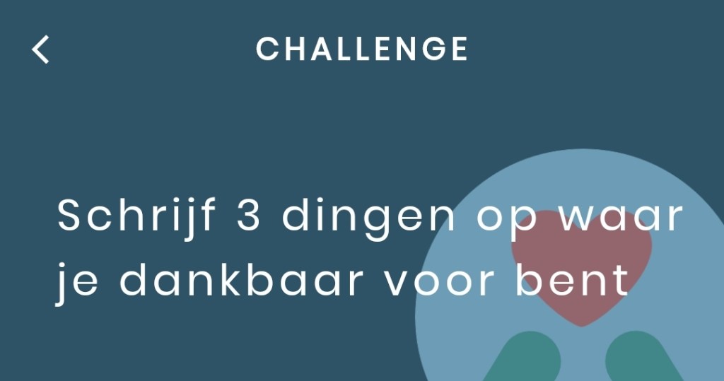 De challenge die ik de afgelopen twee weken heb gedaan is: Schrijf 3 dingen op waar je dankbaar voor ben.