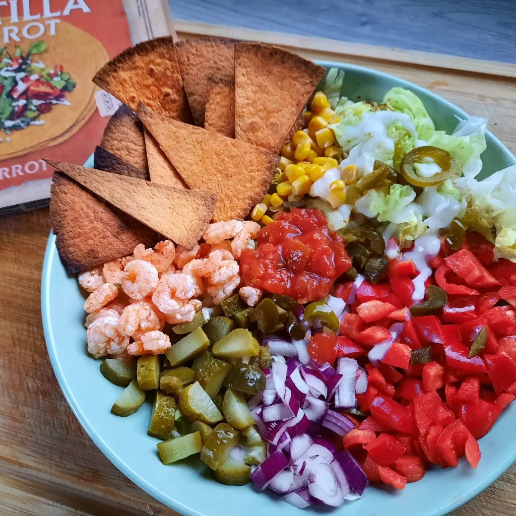 Ben je nog opzoek naar een lekkere makkelijke en snelle maaltijd voor de lunch of voor het avondeten? Zoek dan niet verder, want deze tacobowl staat binnen 10 minuten op tafel. Een heerlijk verfrissend recept op een warme lente/ zomer dag. Het leuke aan dit recept is, is dat je zelf kan toevoegen wat je maar wilt. Ik heb de tacobowl dit keer gemaakt met roze garnaaltjes, maar je kan deze ook vervangen voor kip, biefstukpuntjes, shoarma, crispy tofu, feta, geitenkaas en ga zo maar door. Ideaal recept om lekker creatief mee te zijn en te varieren.
