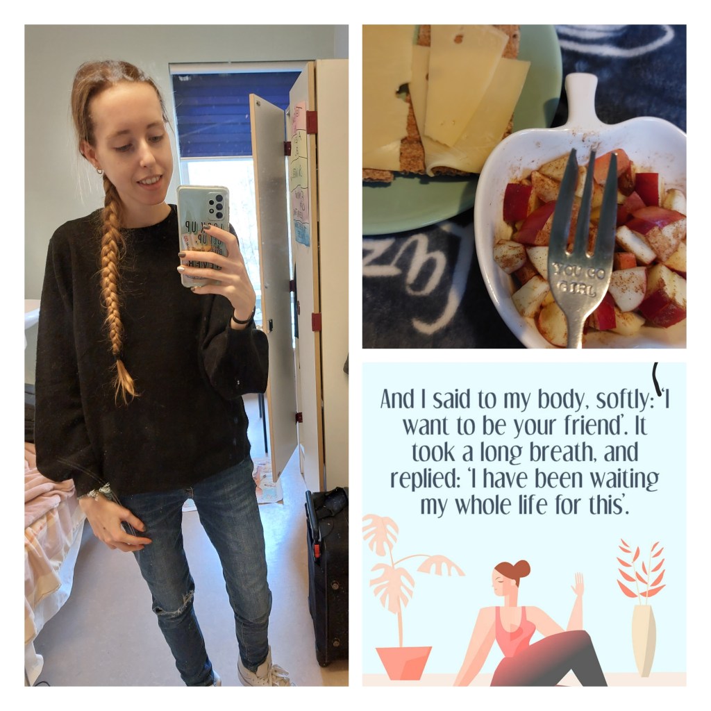 Afgelopen jaar begon goed. Ik behaalde in het eerste jaar van de Pabo gelijk mijn propedeuse. Alles op alles er aan gedaan om deze te behalen, ten koste van mijn gezondheid. Een week later werd ik namelijk met nood opgenomen in de eetstoorniskliniek. Ik leefde op het randje van leven en dood. Na een week hier te hebben gezeten maakte ik de verkeerde keuze om naar huis te gaan. Ze konden mij niet verplichten om te blijven en ik ging dus naar huis. Ik deed er alles aan om mijn gezondheid te verbeteren en ik maakte kleine stapjes vooruit. Het eten ging de eerste weken erg goed en ik kwam aan in gewicht. Dit hield ik een tijdje vol, maar een paar maanden later was ik weer terug bij af. In de zomer werd ik weer opgenomen, maar deze opname had een ander doel. Namelijk het starten van nieuwe medicatie. Nadat mijn lichaam gewend was aan de medicatie ging ik met ontslag. Helaas ging het eigenlijk helemaal niet goed met mij omtrent eten.
