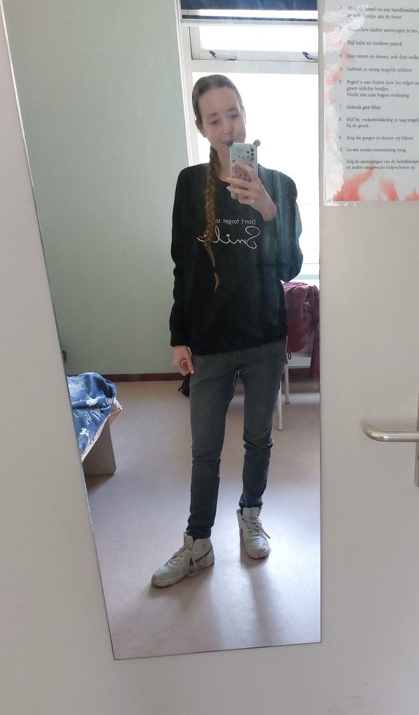 Mijn voedingsintake was de laatste tijd wat gekelderd omdat ik boven een bepaald gewicht kwam en ik op de rem ging trappen. Ook at ik weer veel snacks en werden de hoofdmaaltijden kleiner. Terwijl de hoofdmaaltijden juist groter moeten zijn. De laatste week skipte ik helaas ook mijn koolhydraten bij het avondeten. Tijdens deze opname wil ik weer volwaardig gaan eten en ook regelmatig.