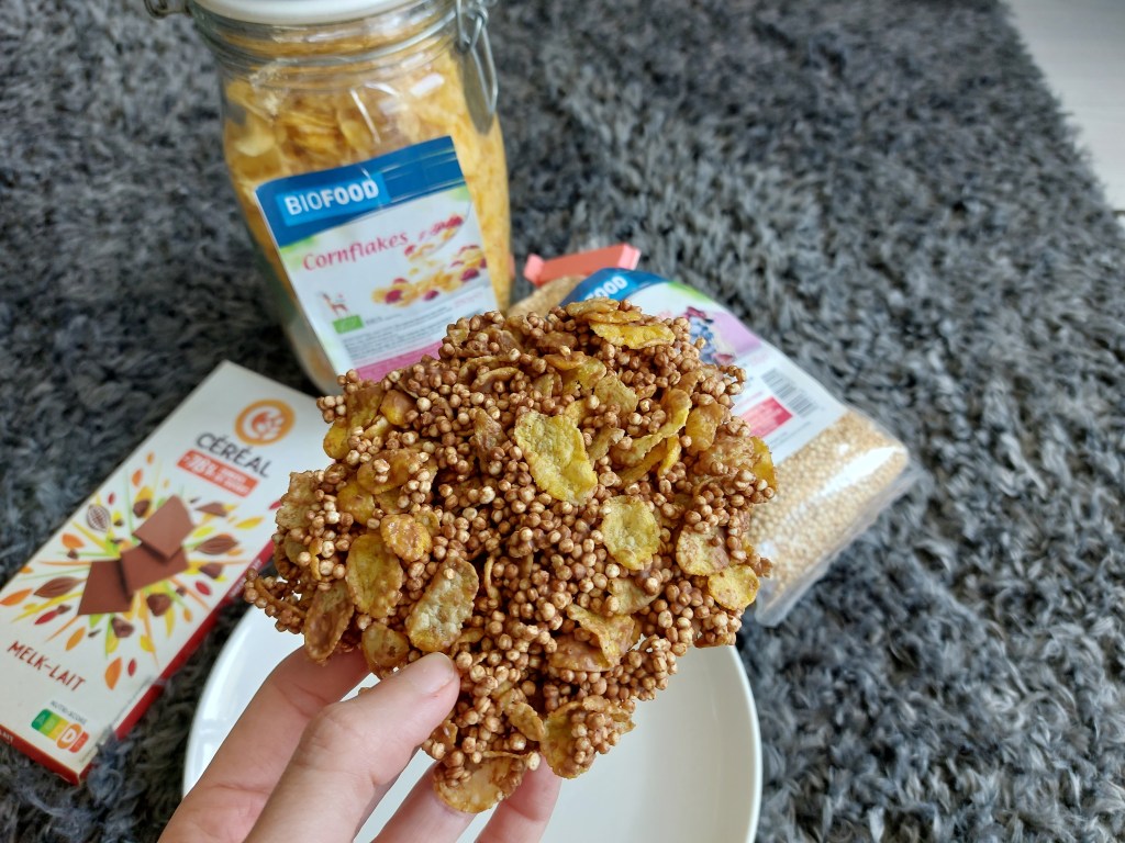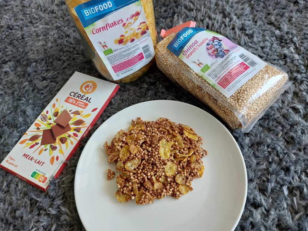 Lekkere ideeën: cornflakes, gepofte quinoa/tarwe, marshmallows, popcorn, pretzels, koekjes, smarties, m&m’s, pepernoten, snoepjes, gedroogd fruit en noem het maar op.