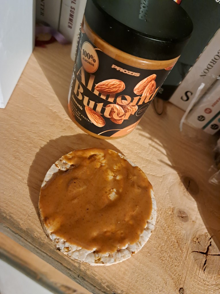 Bij Prozis verkopen ze verschillende soorten pindakazen/spreads. Een tijdje terug heb ik de almondbutter geprobeerd en sindsdien gaat er geen dag voorbij zonder een lekkere rijstwafel met almondbutter
