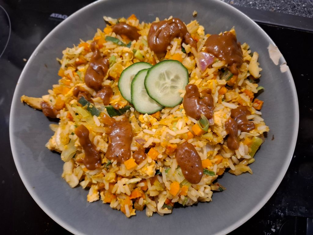 - 150 gram ongekookte (zilvervliesrijst) rijst